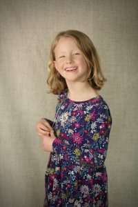 Faye H. is the youngest of three sisters. And like all babies of the family, she is a comedian! Faye is outgoing and naturally charms any adult in the room. She laughs, she sings, and she loves to perform shows with her sisters. From a young age Faye has helped in the kitchen, chopping veggies with her own chef’s knife! Faye has many baby dolls and loves to organize tea parties. She is a vibrant girl brimming with imagination! Oh yeah, when she grows up, she wants to be a carpenter.